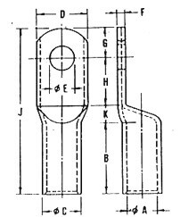 | SIZE mm2 | E | A | C | D | F | B | K | H | G | J | DMI Cat.no |